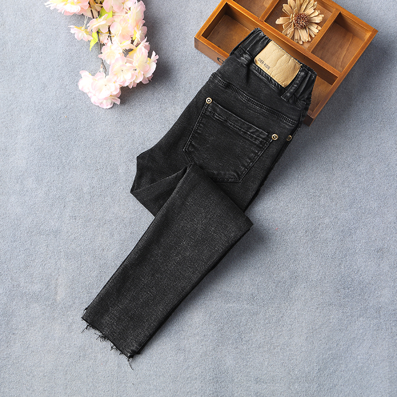 港味寬松顯瘦休閑直筒褲夏裝破洞毛邊百搭高